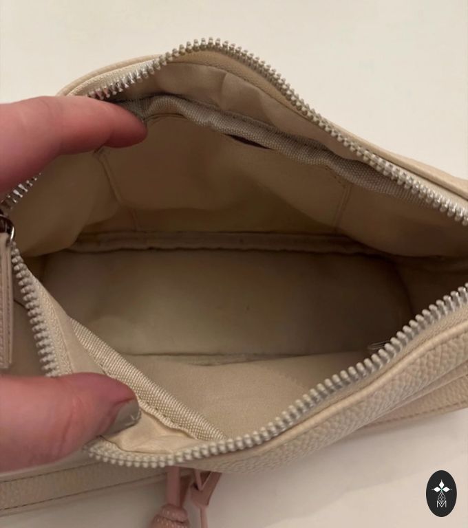 Dydis 20cm x 11,5cm. Plotis 5cm. Labai moteriška, ant rankenos nėra nukritęs nei vienas akmenukas. Galima nešioti tiek ant rankos, tiek ant peties. Aukso kraštai nenusitrynę, kaip nauji. Viduje pamušale yra viena maža dėmelė.