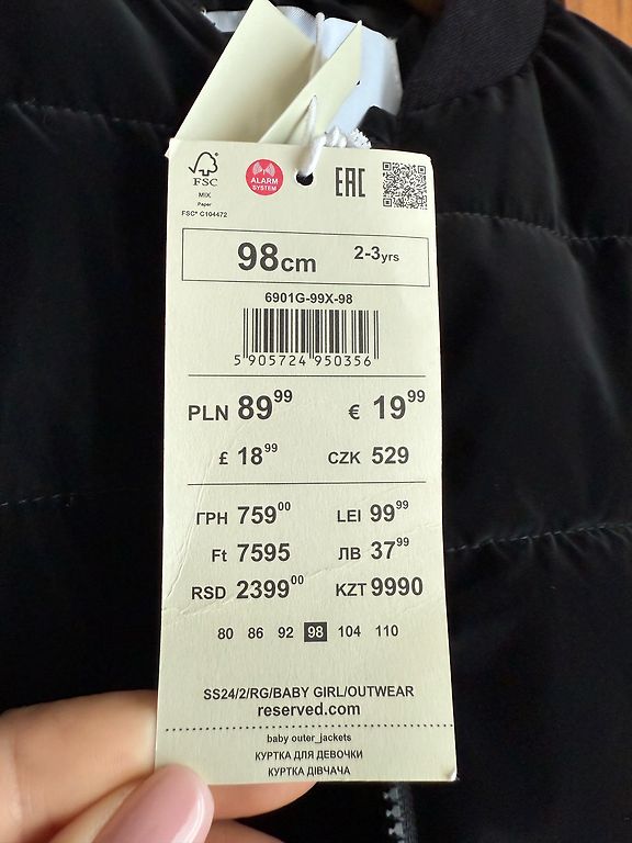 Sleeve length from shoulder 55 cm