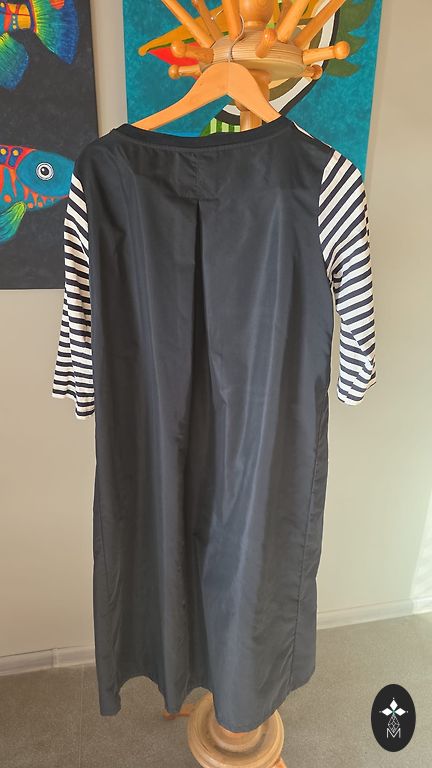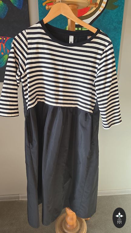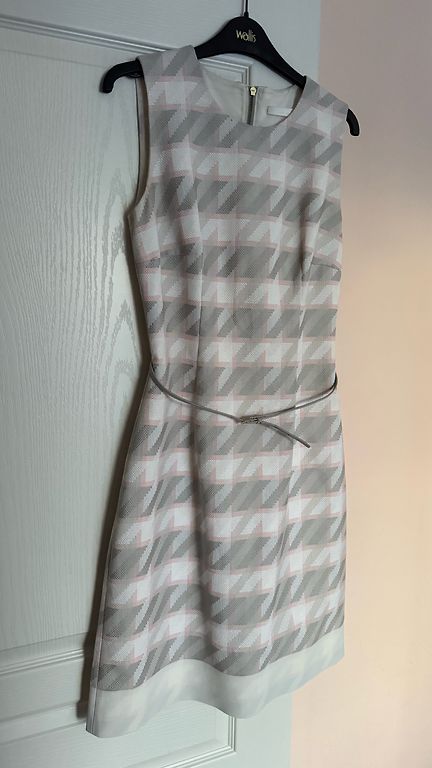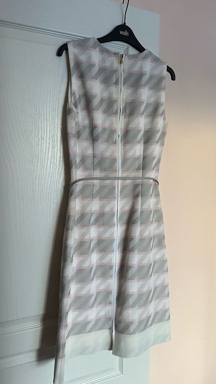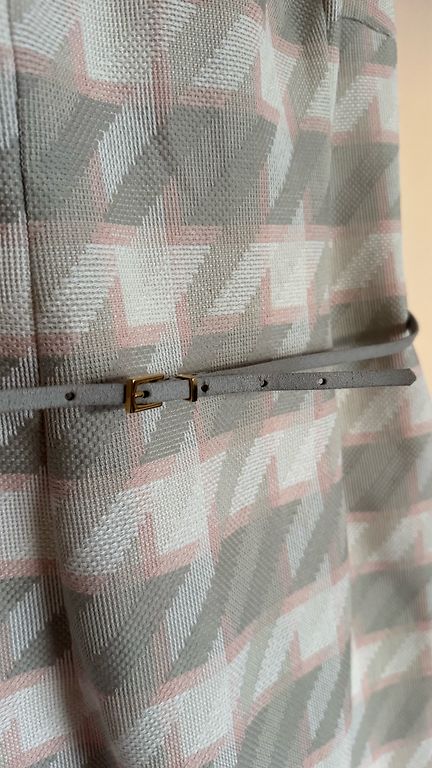 Valge kleit nööpidega, vööga (vöö all on kumm) ja taskutega, külgedel väljalõiked. Ostetud Elkorist, bränd pole teada.