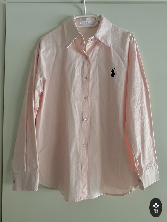 Atsvaidzinošs sarkanais tonis. Priekšā īsāka aizmugurē garāka. Pogas ir aizmugurē. Izmērs nav norādīts, man derēja M-L. Maz vilkta, sarkanais nav mans. Krūtīs 50 cm. Dzīvē nav tik spilgts.