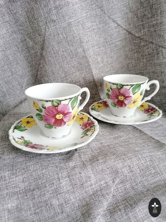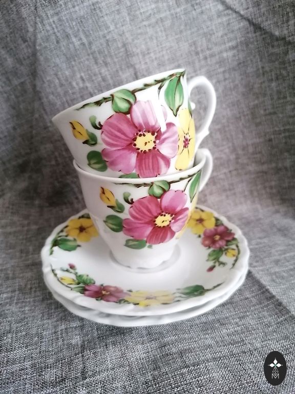 Чудесные и качественные фарфоровые тарелки из тонкой кости Victoria China Czechoslovakia с нежным декором из вьюнка и ежевики. В отличном состоянии. Из личной коллекции. Диаметр 16 см. Цена за комплект.