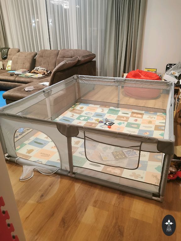 Activity mat 90 cm×120 cm, piece size 32 cm×32 cm.