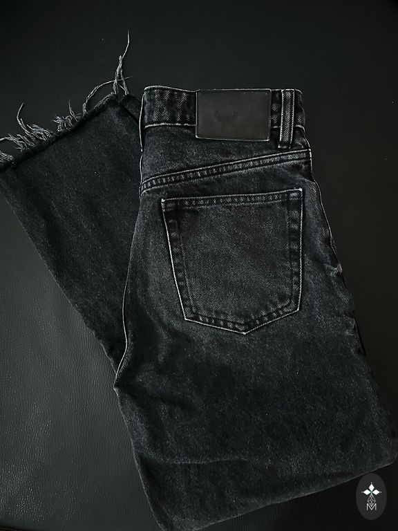 Teksapüksid on paksud ja elastsed. Kõrge vöökoht. S suurus.