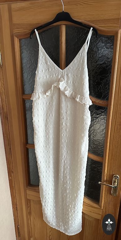Новая, неиспользованная топ с регулируемой стяжкой сбоку – удобно адаптируется к растущему животу. Размер L. Затем подходит также как кормительная рубашка, так как есть отстегивающиеся ленты.
