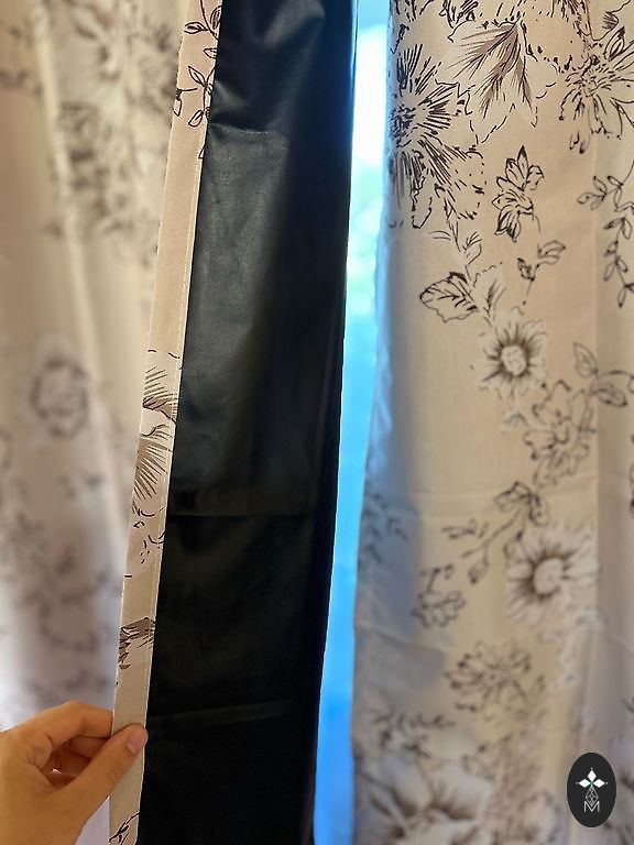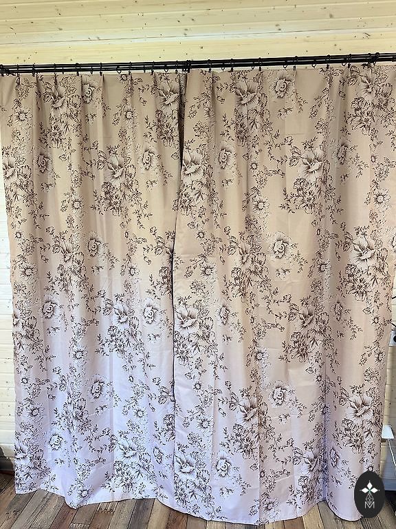 Užuolaidos su gausiais siuvinėjimais.