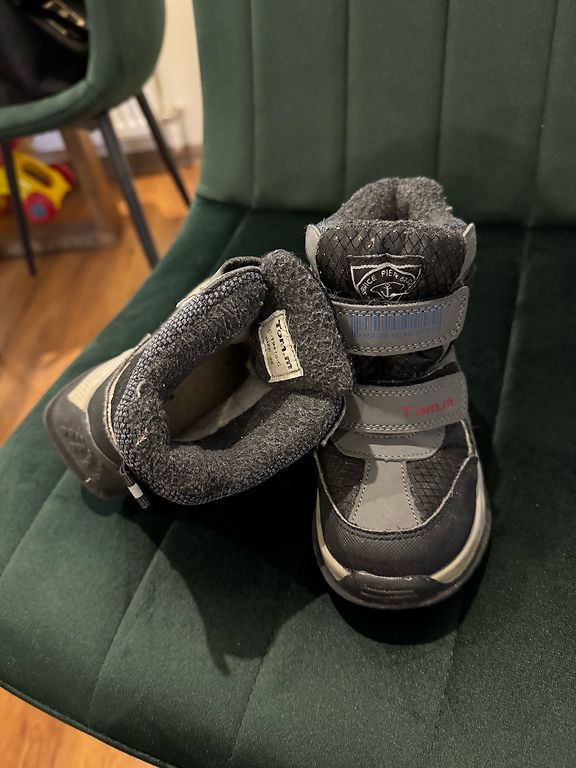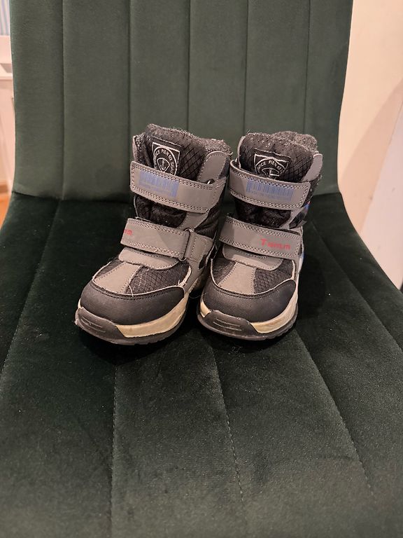 Glīti zābaciņi no HM, 32.izmērs. Pirkti jauni, mazlietoti, bez trūkumiem. Ziemas spelgonim varbūt par plānu siltinājums, tāpēc labāk piemēroti siltākai ziemai vai aukstam pavasarim. Ērti uzvilkt/novilkt.