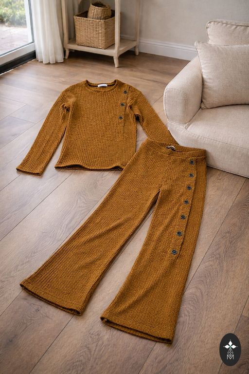 Gražus ir labai aktualus komplektas. Spalva ruda. Dydis S, tačiau tiks ir M, nes yra elastanas. Kelnės MANGO, pirktos už 39.90, platėjančios į apačią. Lengvas megztinis Reserved, pirktas už 29.90. Dėvėtas kelis kartus. Būklė labai gera. Puikiai priglunda prie figūros.