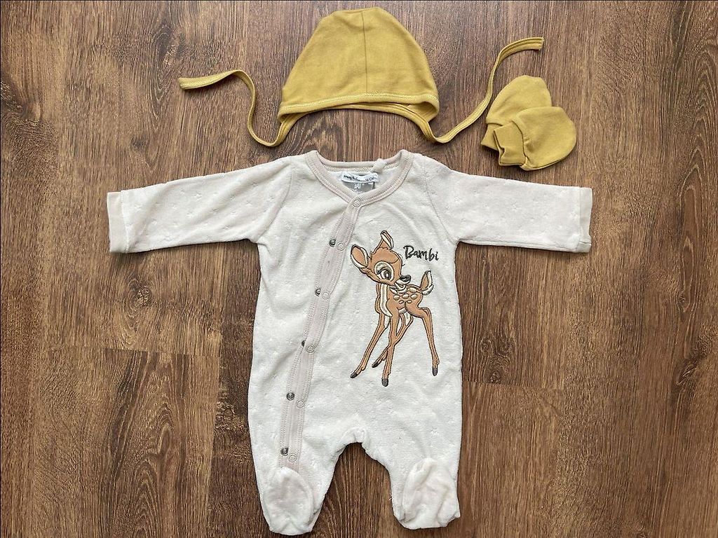 Komplektis roomikuga suletud jalgadega ja wrap ehk kimono tüüpi body (ei tõmmata üle pea, vaid nööbitav). 62 cm.