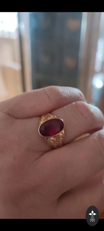 Nameja sarkanā zelta gredzebs. 16.5 izmērs. 4 grami. Izgatavots pirms 20 gadiem pie juvilieri uz pasūtījuma.