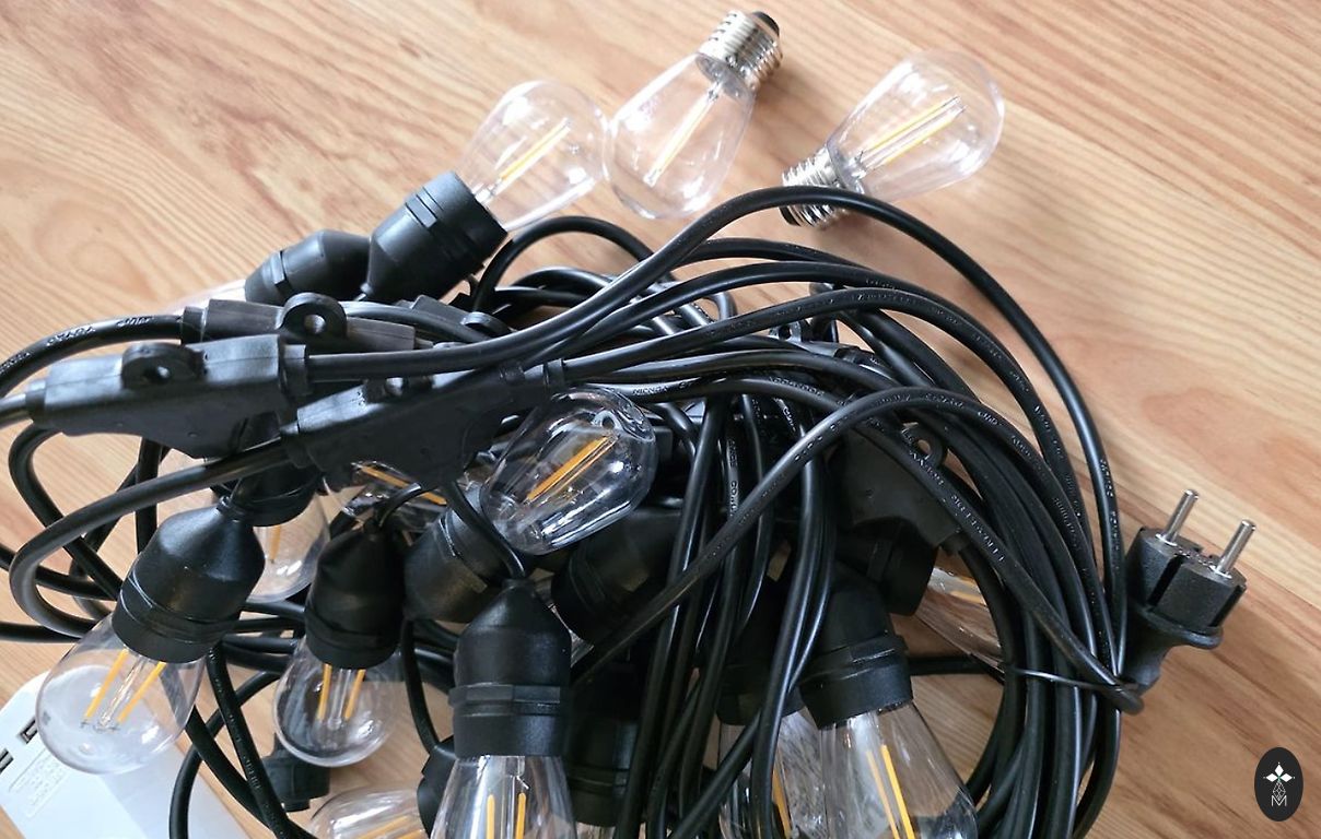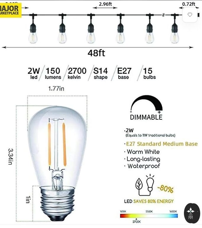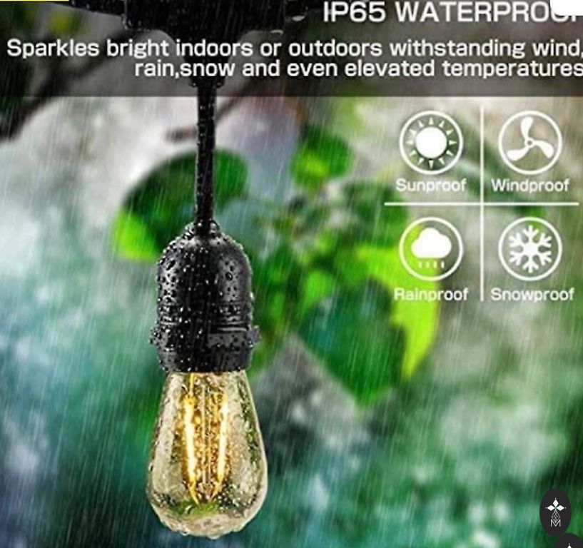 Jaunas Toipwen āra gaismas, dikti garas 45,7 M āra Guinguette gaismas , 75+2 spuldzes, IP45 ūdensizturīgs, 2700 K silti balts iekšpagalmam, balkonam, kempingam, ballītēm