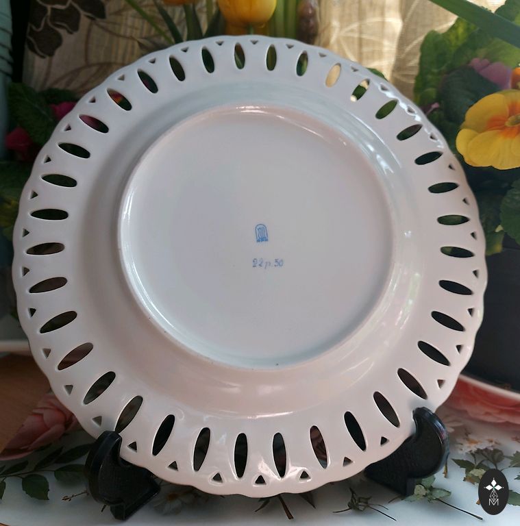 Šķīvītis ar sarkanām lapām. Diametrs 15.5 cm