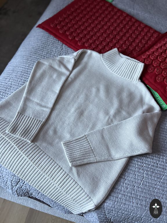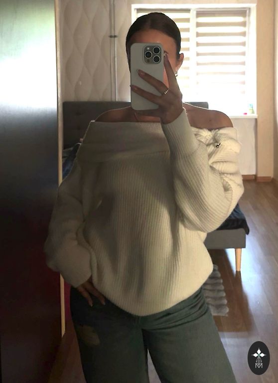 Тонкий трикотажный свитер. Указан размер S, но подойдет на размер M или L. Вероятно, фабрика ошибочно пришила размер S.