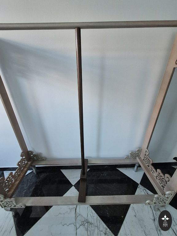 Деревянная арка изготовлена на заказ с встроенным освещением, прикрепленным к стене. 330-220-15. Цвет венге. Также есть журнальный столик.