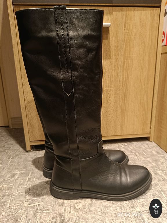 Mustad pikad saapad-botfortid Rule London massiivse kontsa ja platvormiga. Stiilsed ja mugavad. Näevad head välja nii lühikeste kleitide kui ka seelikutega.