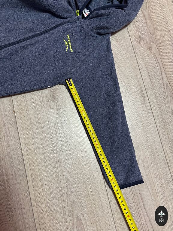 Length 85cm. The zipper pull is broken on one pocket, and the reflective strips are damaged.