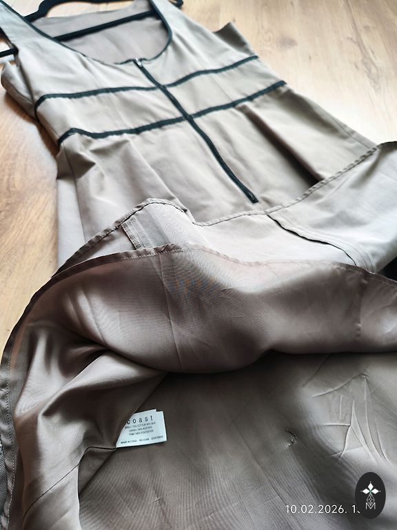 Ilus, erekle kleit vööga. Kleitil on vooder. Tagaosa kinnitamine tõmblukuga.