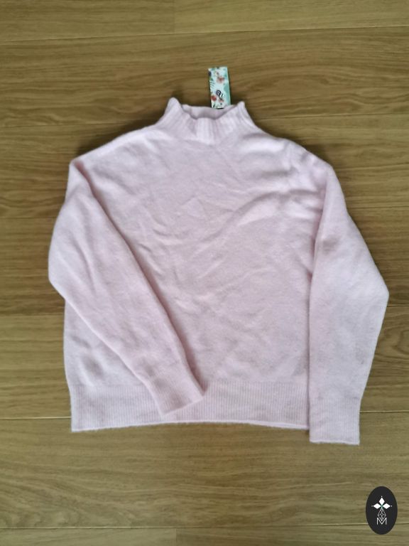 Naujas, nedėvėtas, ryškus, patogus, su surišimais ant rankų, kurie suteikia megztiniui dar daugiau moteriškumo.