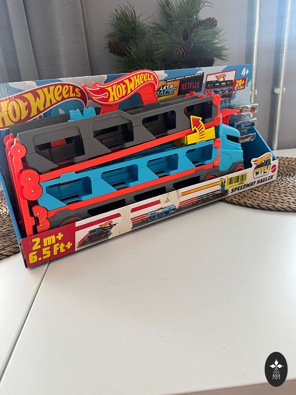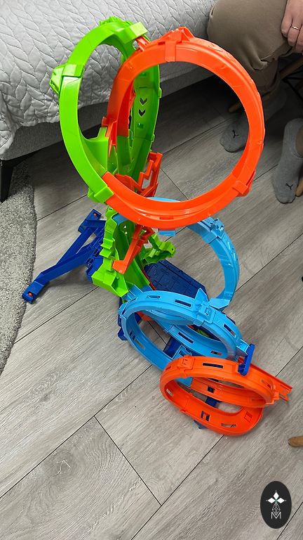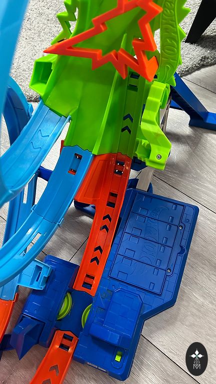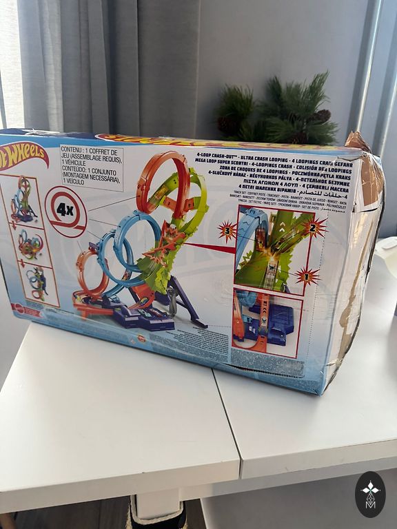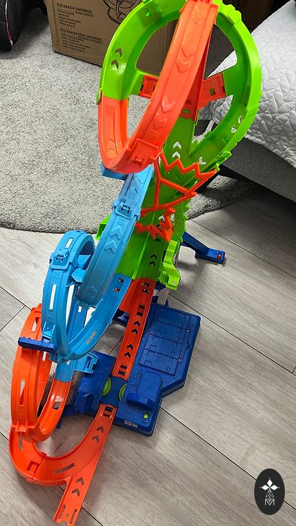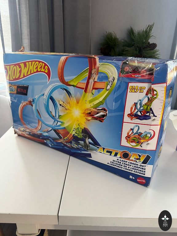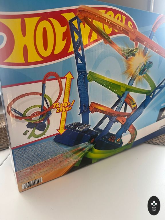 Slightly used, in very good/excellent condition. A powerful motorized track with a triple loop that enhances stunt fun to a dizzying level. Children will love testing their skills by driving cars on the track at dizzying speeds and trying to overcome the corkscrew madness without crashing! The unique corkscrew design ensures cars move along the track at maximum speed. 3 high-speed boosters power cars through 3 incredible loops. To increase intensity, use the launch ramp to engage more cars in close combat. Launch cars just in time, or they'll crash in one of the 3 wild crash zones!