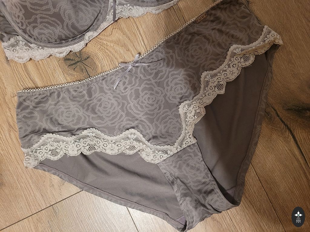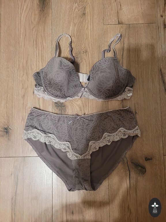 К коричневому бюстгальтеру в комплекте трусики.