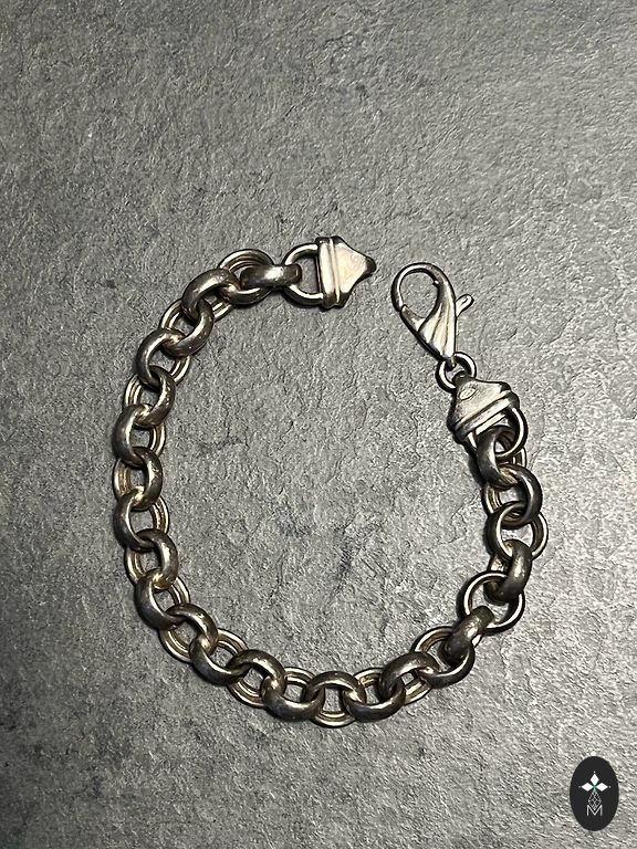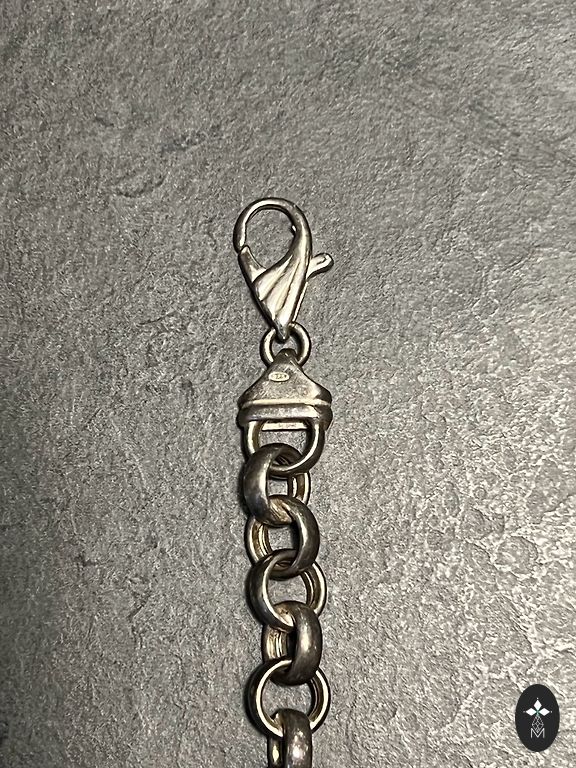 Sudraba aproce ar rozā perlamutru. Iekšējais apkārtmērs 17. Aiztaisās ar “āķīti”.