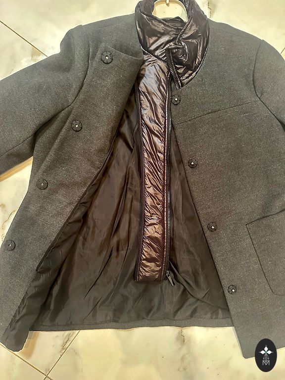 Excellent quality coat, worn 2x - selling because it's too large. Length 113cm, chest and hips - 122cm. The hood provides excellent wind protection. Side slits can be opened for comfort while sitting. Inside, there is a closable pocket.