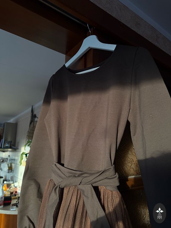 Новое платье 2-в-одном с облегающей подкладкой типа боди. Платье выглядит супер 🌺, но не угадала с размером. Указан размер L, но скорее подходит на M. Эластичное.