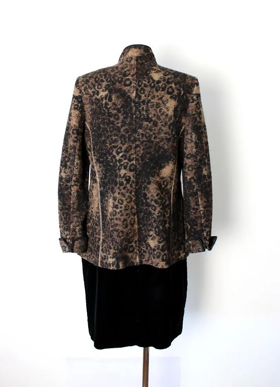 Balta jaka ar melniem konteastējoširm elementiem un zelta pogām