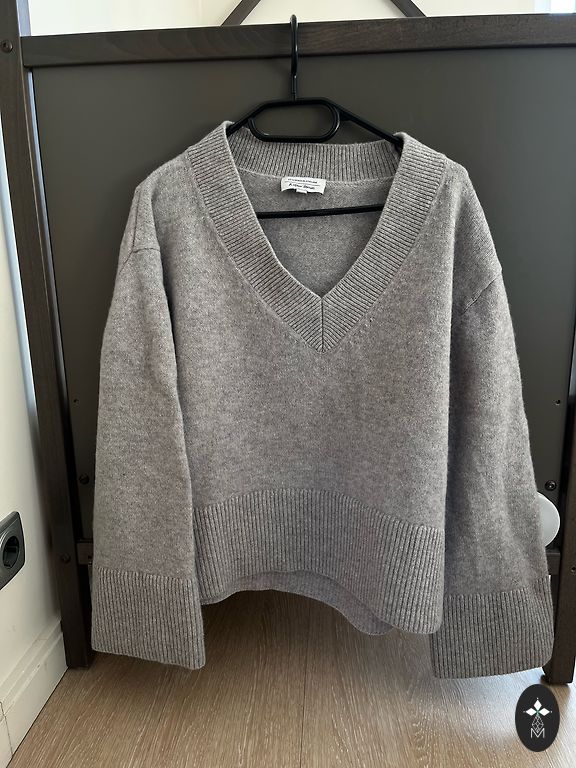 Stilingas, vilnonis megztinis, gražios pilkos spalvos. Dydis L. Įsigytas 2026 metų sausį. Labai geros būklės. Nugaros ilgis - 60 cm, plotis - 61 cm. Laisvo stiliaus🩶