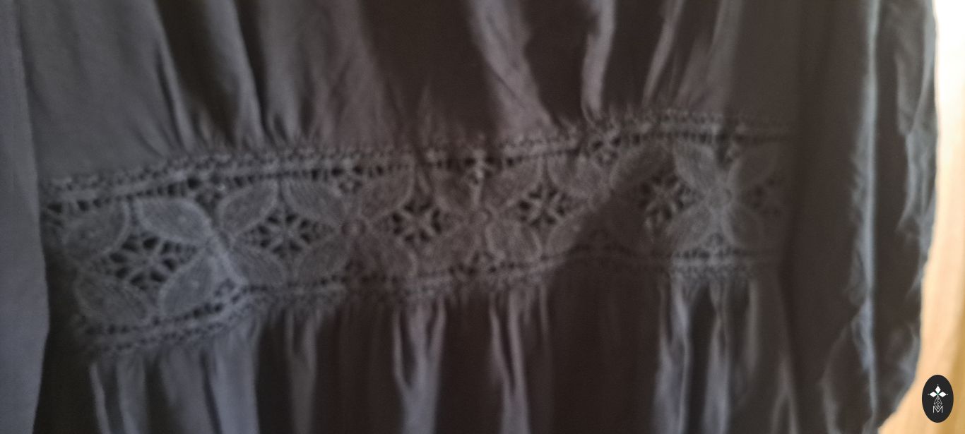 Didelio dydžio tunikos suknelė, krūtinės apimtis 64×2, klubų apimtis 68×2, ilgis 100 cm.