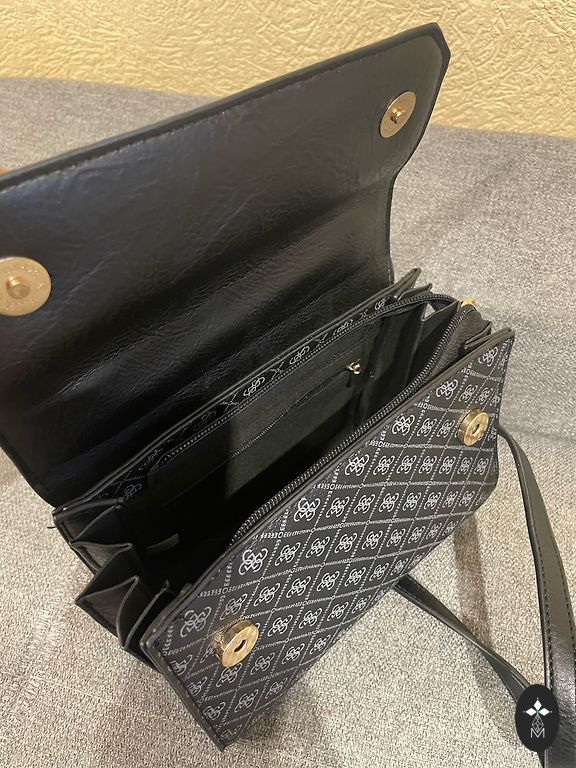 Handbag - can be carried by hand, as well as with a metal strap - as a long one. And wallet - the wallet can also be worn over like a handbag. The wallet also has removable metal straps.