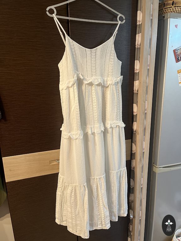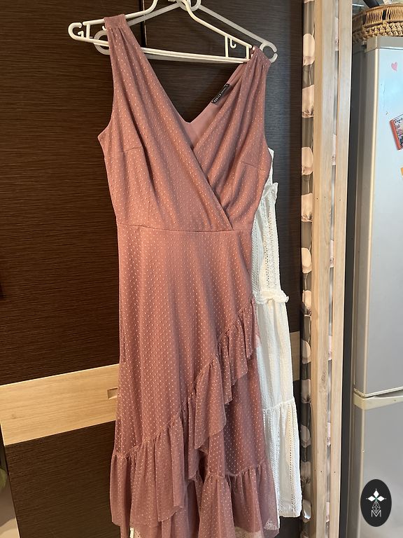 Õrnalt kantud kleit. Taga tõmblukuga kinnitus.