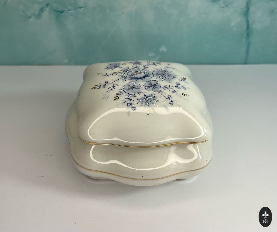 Retro metalo ir porceliano kabykla su rožėmis.