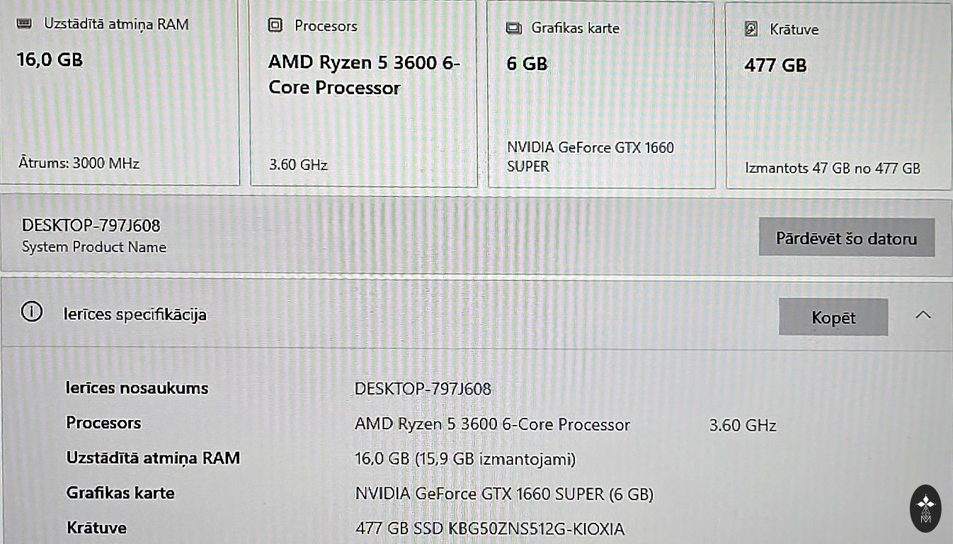 · Videokarte: Radeon Pro 5300 / 5500 XT (precīzu modeli varu pārbaudīt pēc pieprasījuma, jo tas ir 2020. gada modelis)