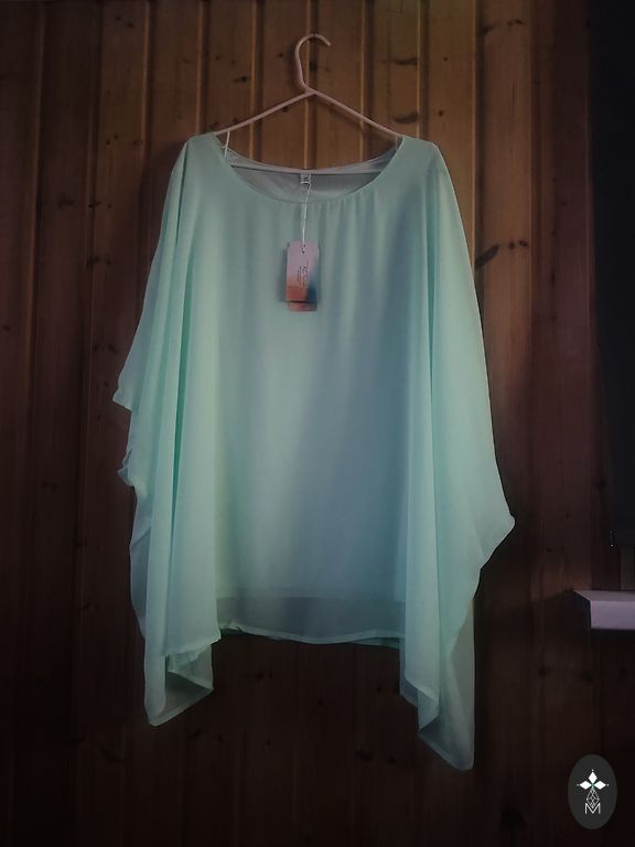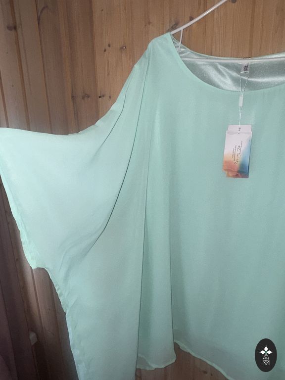 Airy fabric, brighter in life (brown tone saturated, beige-brown). Buttoned. Length 110. Underarms 53. Hips 60cm. Slits.