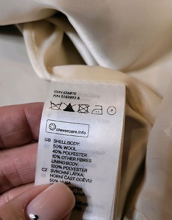 100% high-class wool coat, made in Italy. Italian size 42. Fits size 36-38 (s-m) for approximately 1.70m height. Fits fantastically on the figure! (not straight) Clean.