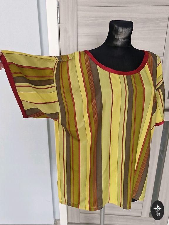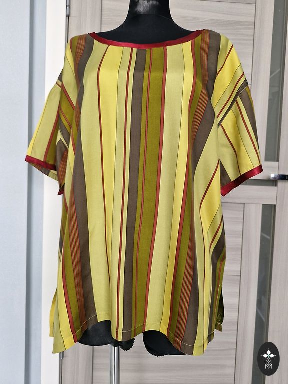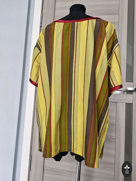 Стильная рубашка на каждый день, можно подвернуть рукава на 3/4. Ткань плотный хлопок, немного тянется в ширину, указан размер XL, но, на мой взгляд, лучше подойдет на размер L. Длина 62 см, грудь 51x2 см, тянется до 53x2 см. Без дефектов.