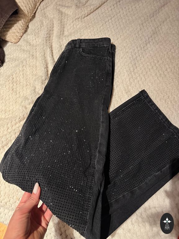 36 izmērs, bet labi derēs arī uz 38 izmēru, jo pati idkienā nēsāju 38. Augsta jostas vietas. Nedaudz tumšāki brūns tonis, nekā kamerā parādās.