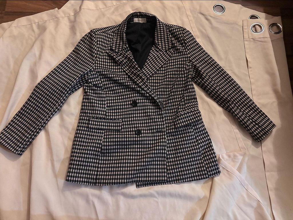 Lengvo audinio švarkas be sagų. M dydis tinka kaip oversize.