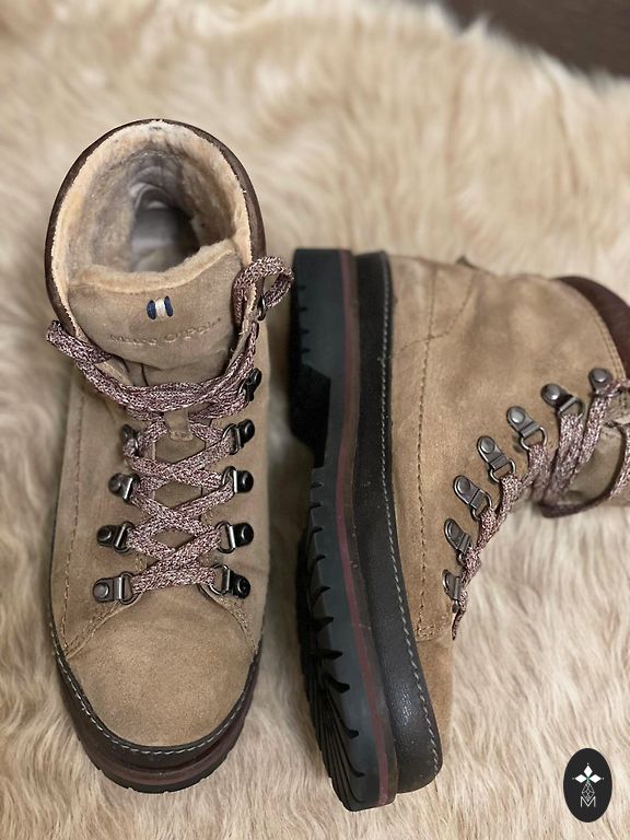 Отличные замшевые ботинки, есть небольшие следы использования, которые трудно заметить на замше, но ботинки не сильно ношены, что можно заметить по подошвам. Очень удобные. Ботинки запылились от стояния, что видно на фото.