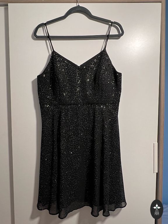 Juoda suknelė su nėrinių rankovėmis, dydis L.