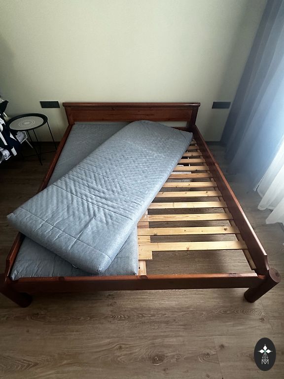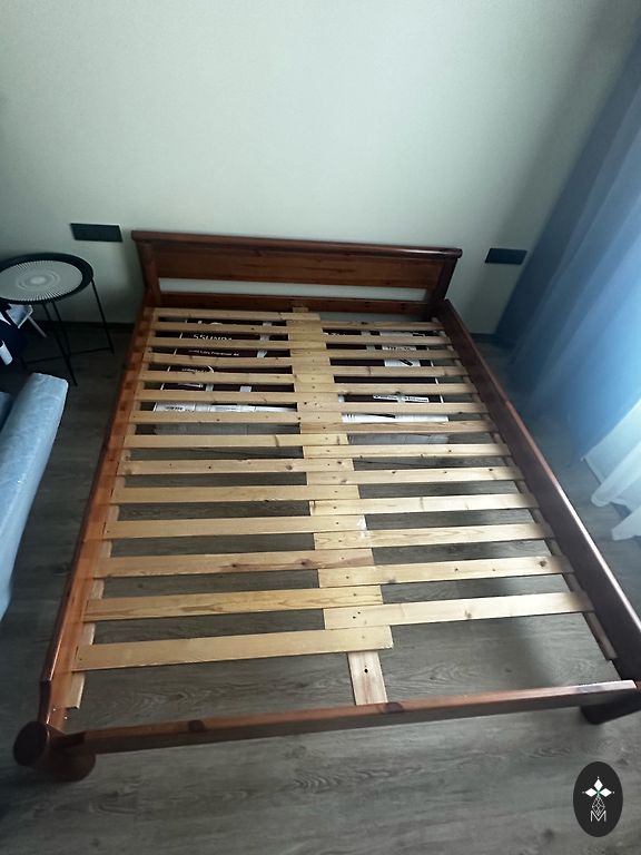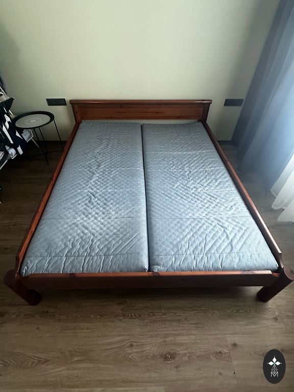 Gultas rāmja kājām daži skrāpējumi, bet augšā viss izskatās kā jauns