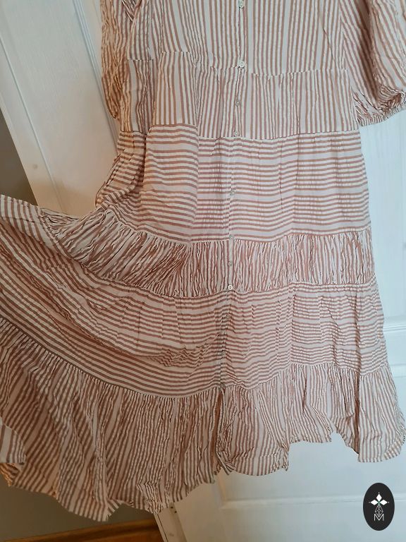 Skaista, interesanta piegriezuma kleita ar bantītēm. Ne reizi nav vilkta, tikai piemerīta, lai saprastu, ka nesadraudzejamies:)