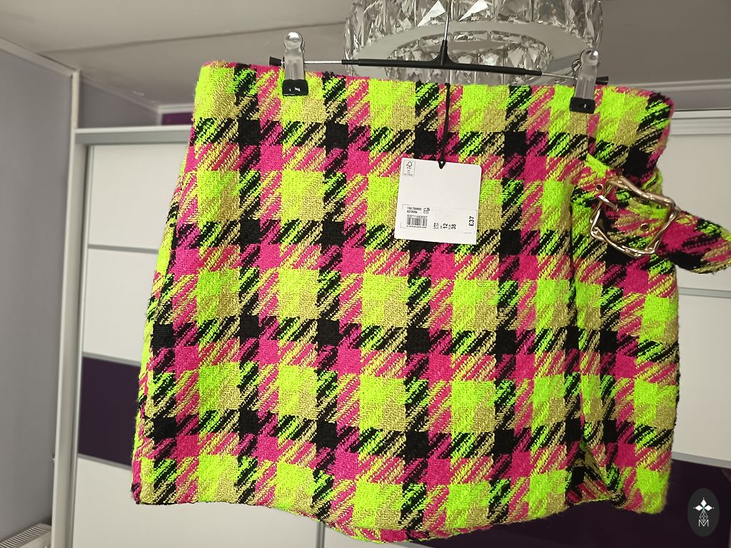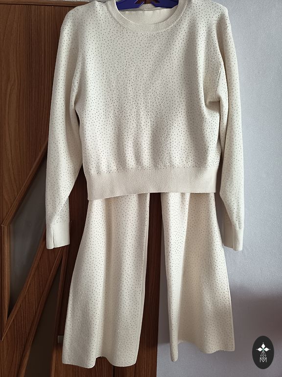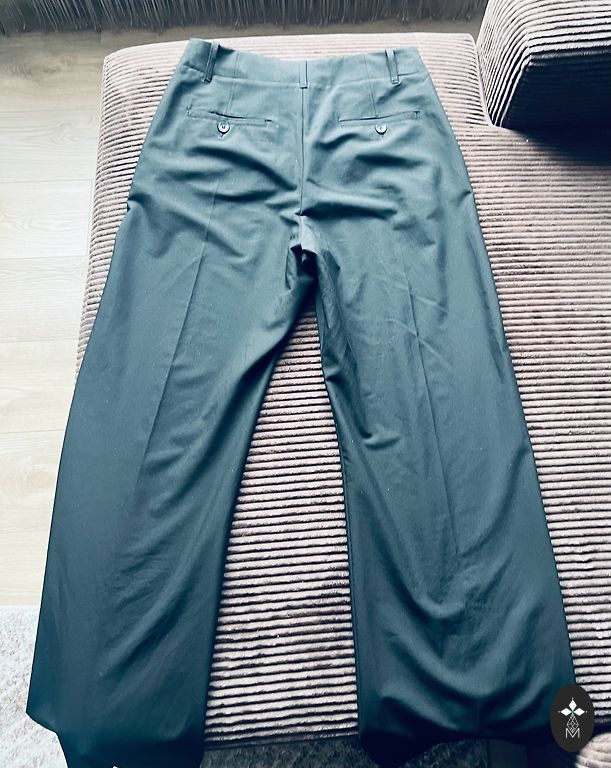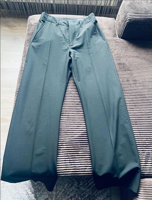 Ādas imitācijas bikses ar augsto jostas vietu un ļoti platām starām,jostu.Krāsa kā pirmajās divās bildēs,sulīga.Dāvānā šortsvārki jauni(defekts-pie rāvējsēdzēja atiris)