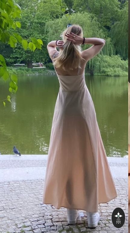 Krūtinė 61 × 2 cm, klubai 74×2 cm, ilgis 141 cm. Dėvėta 1 kartą. Suknelė reikia išlyginti.