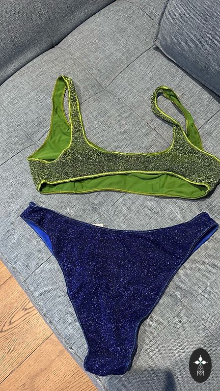 Ārkārtīgi skaists un kvalitatīvs zeltīts peldkostīms L izmēra. Es teiktu tomēr labāk uz M, un formām, jo man, diemzel augšā ir pa mazu.