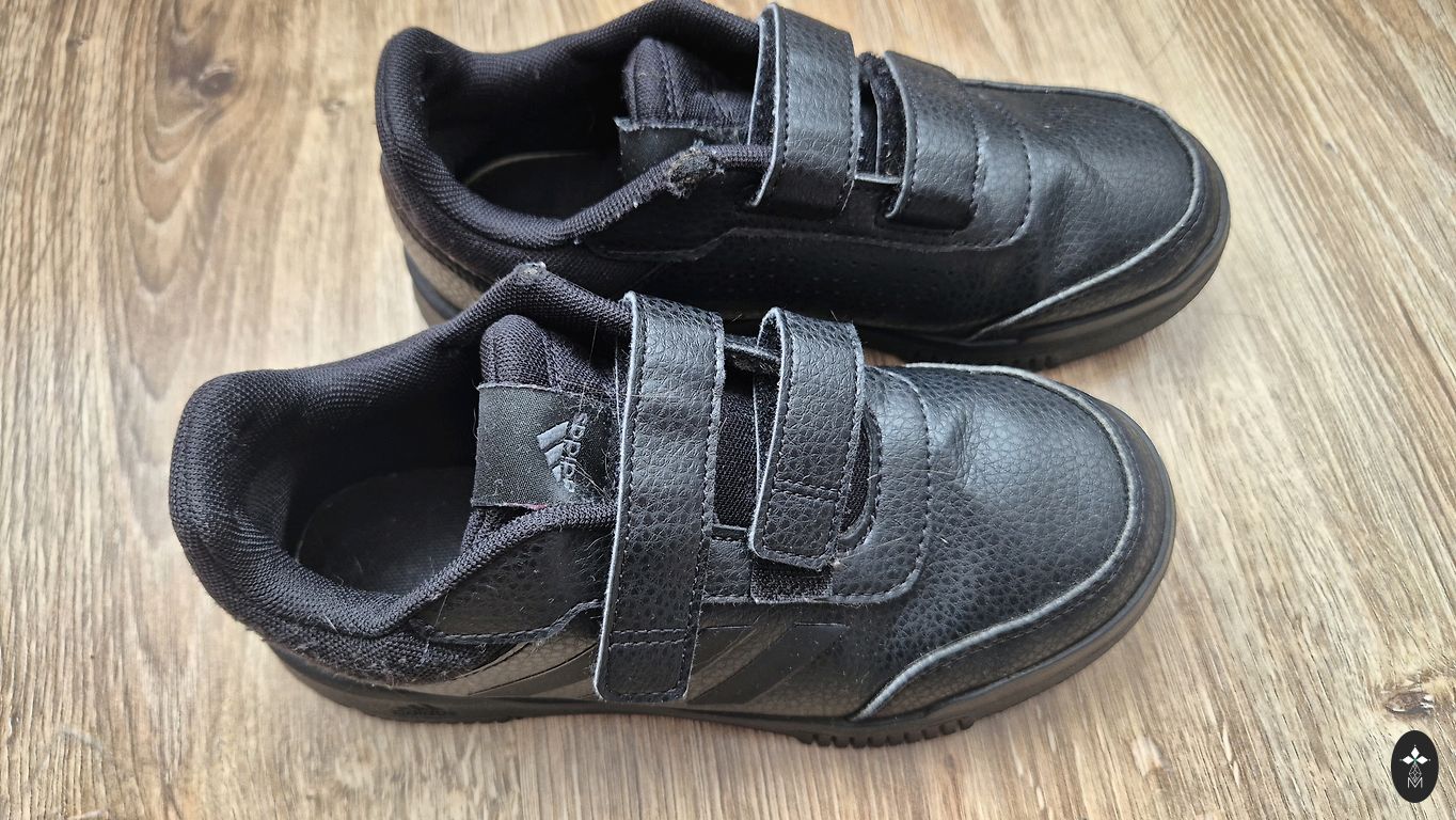 26 suuruses jalanõud. Sisetald 16,5 cm. Müün sümboolselt. Visuaalselt kriimustatud, pildil näha. Ei ole ideaalses seisukorras, sobivad lasteaeda või õue. Takjakinnitused kleepuvad hästi ja kannaosa pole läbi. Ainult botase küljele on kulunud auk, vaata pilti. Jalanõud on pestud pesumasinas, kuid talla all olevat mustust ei ole lisaks hõõrutud, seal on mustuse jääke.