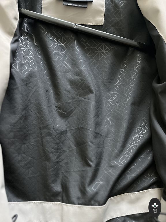 капюшон, двухсторонняя молния, затягивающаяся талия сзади. Устойчива к ветру и дождю. Карманы: два спереди, два на груди сбоку, внутренний карман и скрытый внутренний карман на груди.