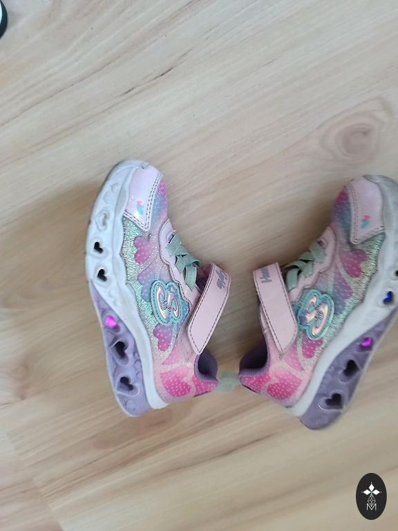 Audinio mergaičių kedukai su lipukų užsegimais. 31 dydis, 20 cm vidpadis.