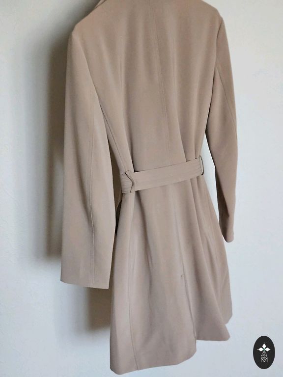 A short jacket made of fluffy fabric with a round neckline, concealed hook fastening at the front, and discreet side pockets. Shoulder pads and long sleeves with pleats at the shoulders for a defined silhouette. Lined.