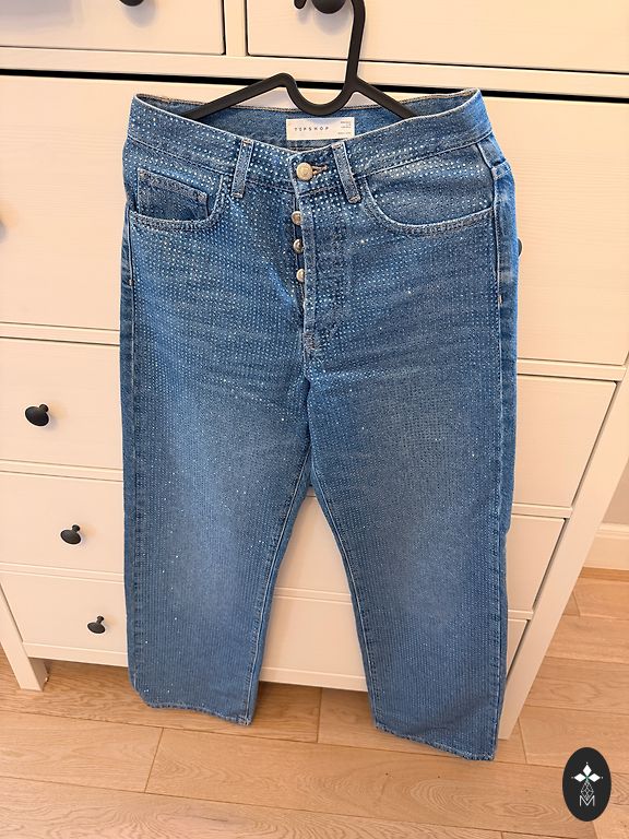 Uzvilkti 1x. Teicamā stāvoklī. Mom jeans, augsta jostasvieta. Iekšstara garums: 75cm. Josta(augsta): 34cm